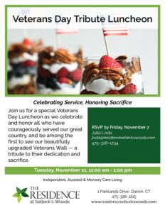 Join us for a special Veterans Day Luncheon as we celebrate and honor all who have courageously served our great country, and be among the first to see our beautifully upgraded Veterans Wall — a tribute to their dedication and sacrifice.